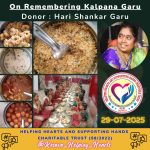 Dinner on : 28-07-2025,Lunch on : 29-07-2025,Dinner on : 29-07-2025.Donor : Hari Shankar Garu.