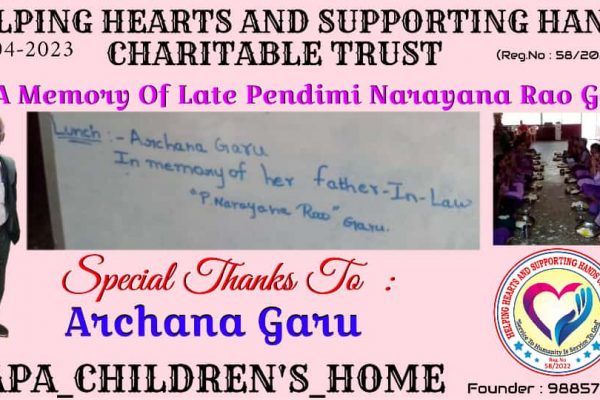 Uncategorized Special Thanks To Archana Garu. admin3 years ago3 years ago01 mins mins Food Donation At PAPA Home. Read More