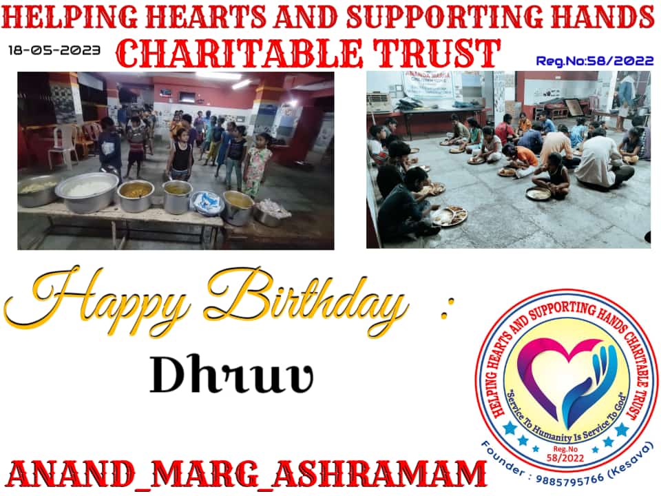 UncategorizedHappy Birthday Dhruv. admin3 years ago3 years ago01 mins mins Food Donation At Ananda Marg Ashramam. Post navigation Previous: Recognition By Create A Smile Foundation.Next: Food Donation At Seva Samajam Ashramam. Leave a Reply Cancel replyYour email address will not be published. Required fields are marked *Comment * Name Email Website Save my name, email, and website in this browser for the next time I comment.